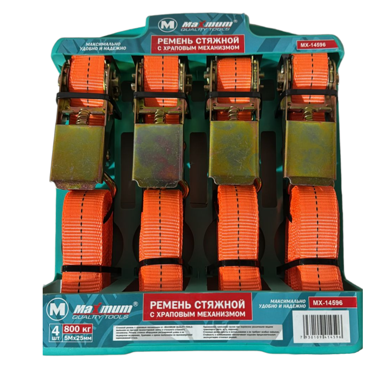Храповый механизм и крюки плотно натягивают ленту и предотвращают выпадение и тряску груза до 800 кг. во время движения.